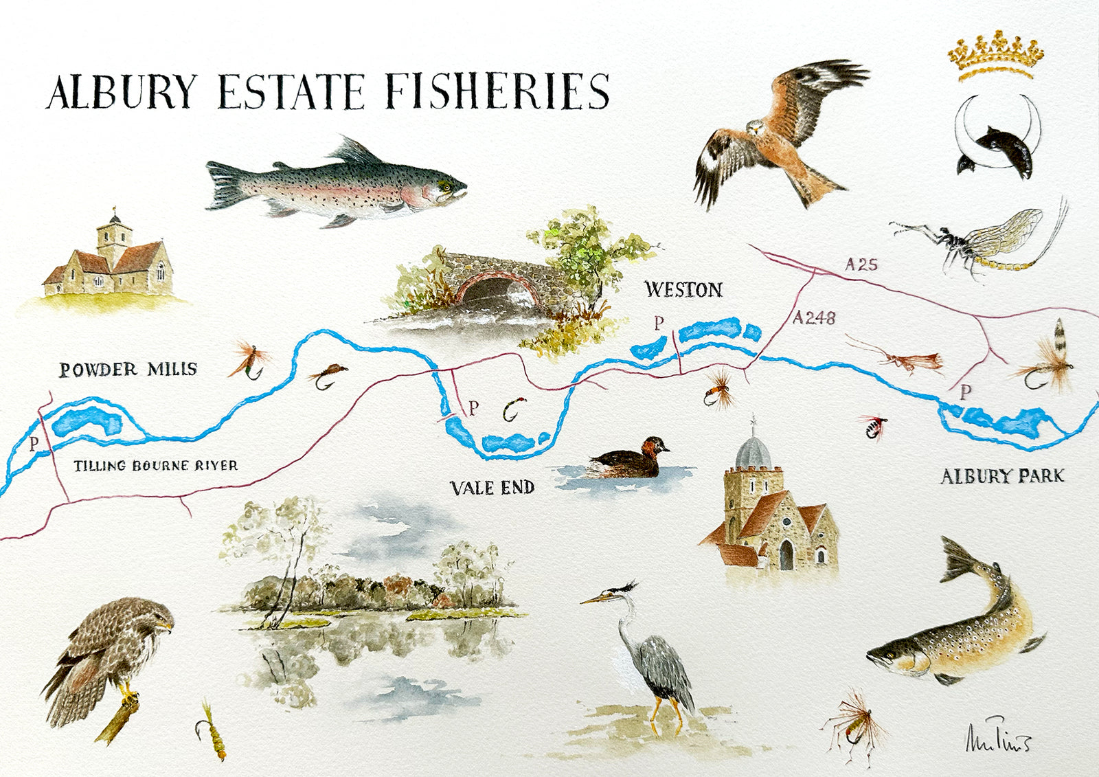 The Albury Estate trout fishing lakes were established in the late 1970s, many formed through the restoration of historic millponds in a valley long associated with harnessing water power.